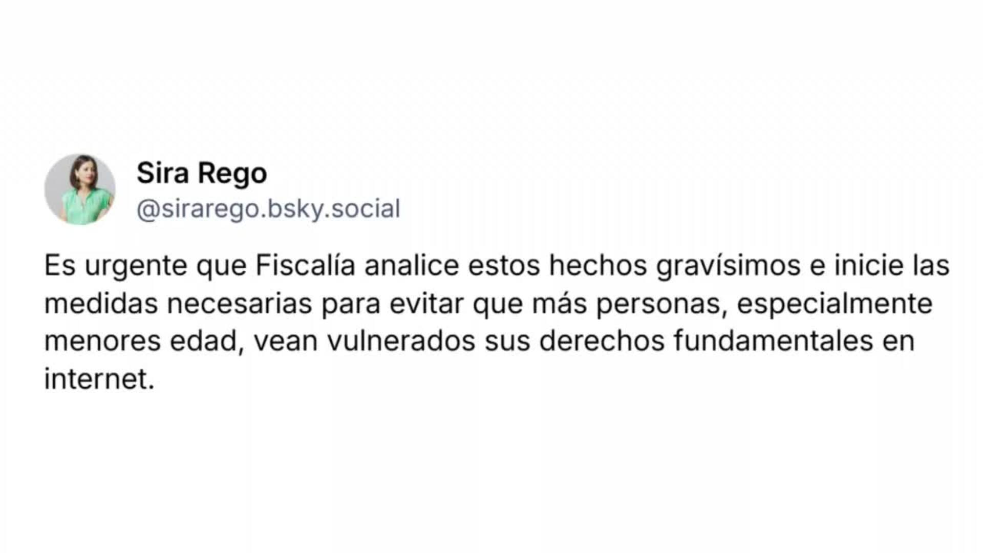 La ministra de Juventud e Infancia, Sira Rego, ha solicitado a la Fiscalía investigar a Grok, la IA de X, por la posible difusión de contenido de violencia sexual contra menores, lo que podría constituir un delito.